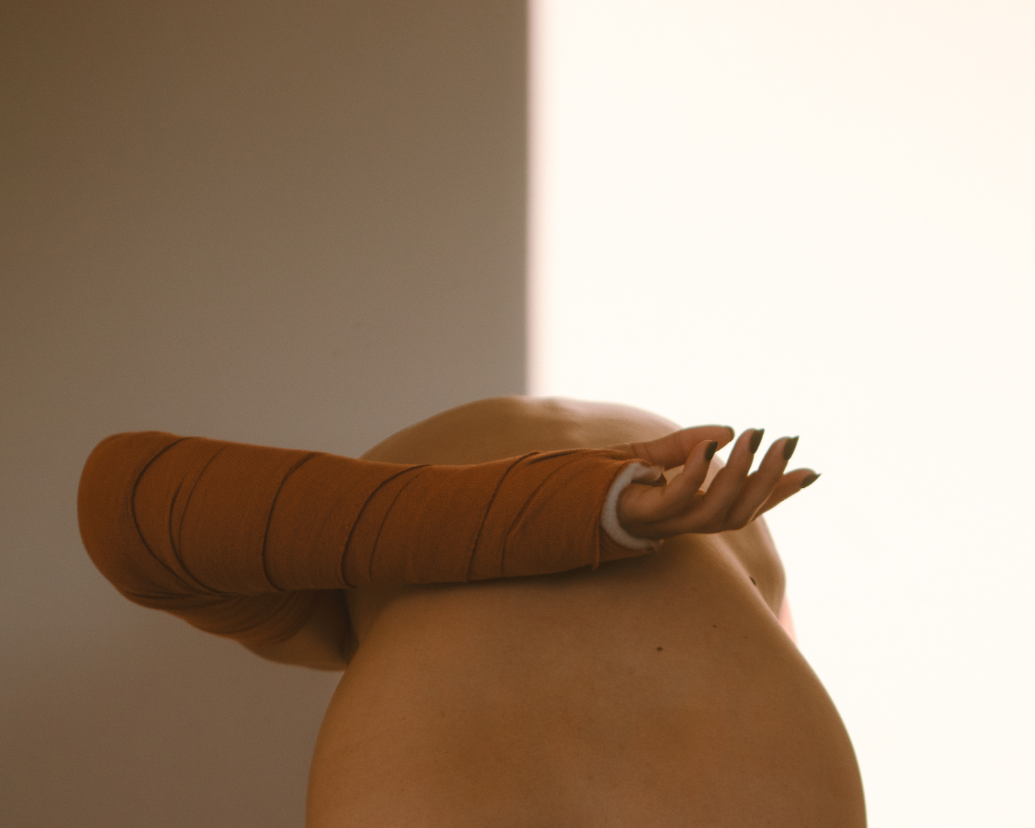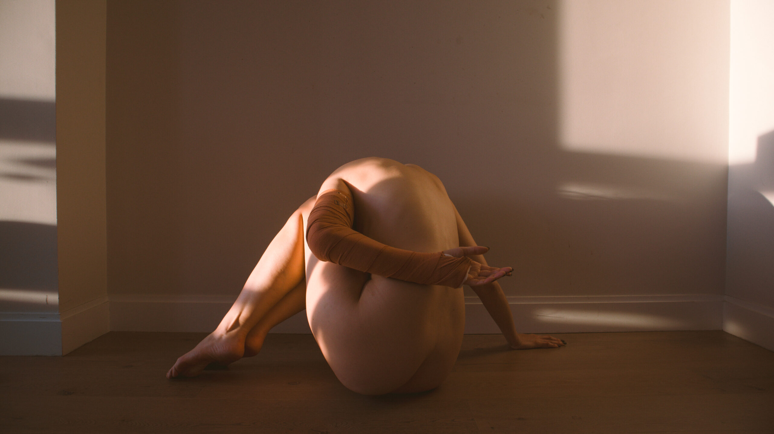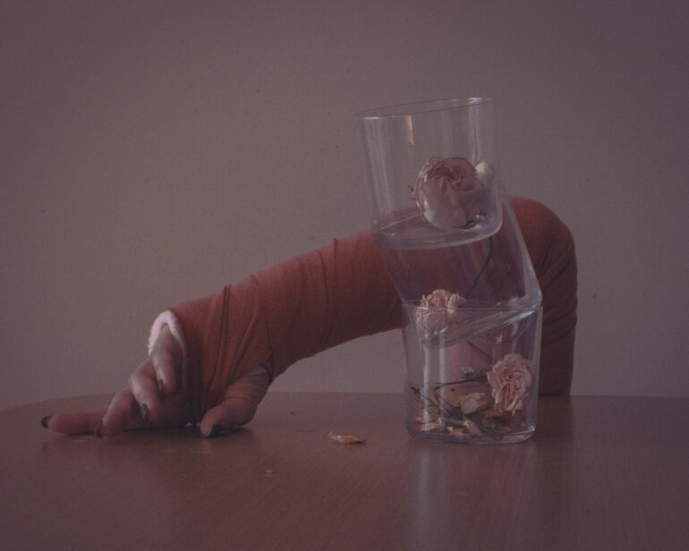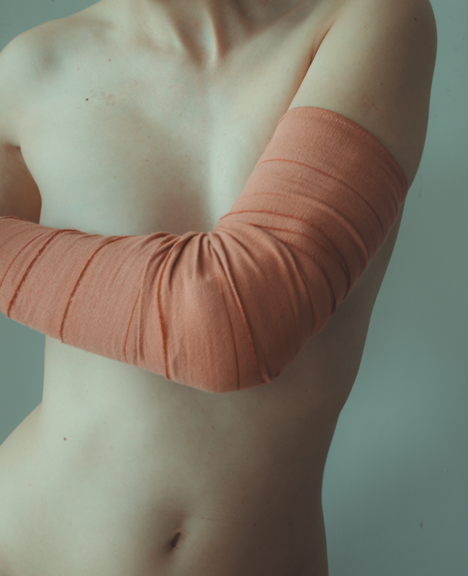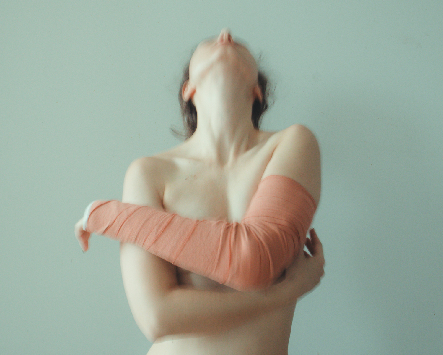 London-based queer photographer Vlada Nebo, known for her intimate self-portraits exploring bare skin, emptiness, and vulnerability, has turned her lens on herself while in recovery. After dislocating her elbow — a devastating injury for someone whose work depends on the body’s precision — Vlada began documenting the slow process of healing through a new series of self-portraits. Cast-bound and limited in movement, Tender Mechanics captures the quiet tension of stillness, the strange disconnection from one’s own body, and the fragile beauty of re-learning touch.